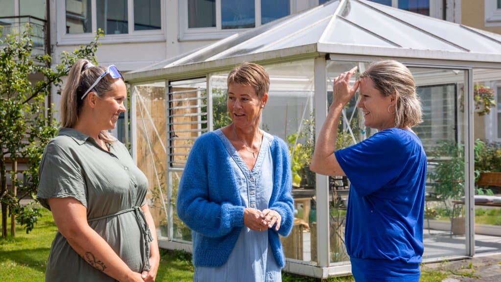– Jeg tror innholdet og temaene i kurset er gjenkjennbart for alle, sier avdelingsleder Rita Brun Gullhav (i blå jakke). Til høyre for henne står IA-rådgiver Monica Overaa fra Nav Arbeidslivssenter Agder, som har bistått den kommunale enheten med å bl.a. ta i bruk Lynkurs i HelseIArbeid. / FOTO: Tor Erik Schrøder.