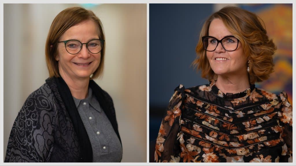 Til venstre: Siri Tau Ursin, administrerende direktør for Nordlandssykehuset HF. Til høyre: Cecilie Opdan, leder for IA-bransjeprogram sykehus. / FOTO: Morten Johnsen Solberg.
